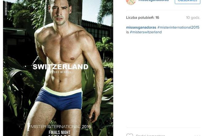 Tytuł Mistera International 2015 zdobył Szwajcar Pedro Mendez. Zwycięzca tytułu najprzystojniejszego mężczyzny ma ciemne włosy i klasycznie zarysowaną szczękę. Mieszka w Genewie i jest zawodowym modelem. Pedro w tym roku skończył 28 lat. Naszym zdaniem trochę przypomina polskiego mistera sprzed roku - Rafała Maślaka.