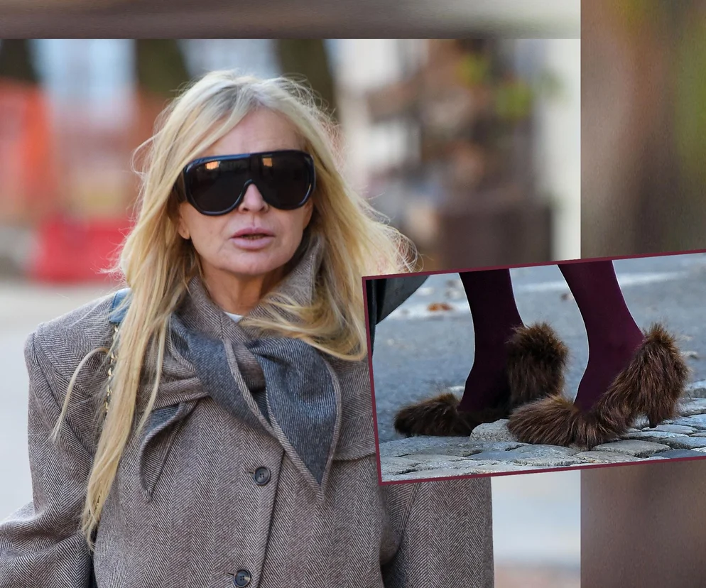 Wystylizowana jak na pokaz mody gwiazda ruszyła na zakupy do apteki i do warzywniaka. Do jesiennej marynarki o ciekawym kroju dobrała nowoczesne okulary, nogi ozdobiła bordowymi rajstopami, a na stopach miała futrzane buty na obcasie, od których nie dało się oderwać wzroku. Zwłaszcza, że obuwie niczym szczotka zmiatały brudy z warszawskich chodników.