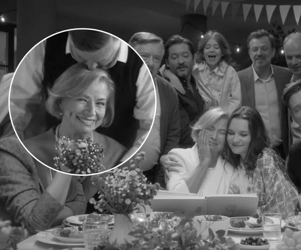 W pewnym momencie barwy ciemnieją i film zmienia się na czarno-biały. W kolejnej scenie widać Bożenę Dykiel w otoczeniu kwiatów. Osobny bukiet przynosi jej serialowy mąż. Nagranie kończy się krótkim, ale jakże wymownym napisem: "Na zawsze z nami".