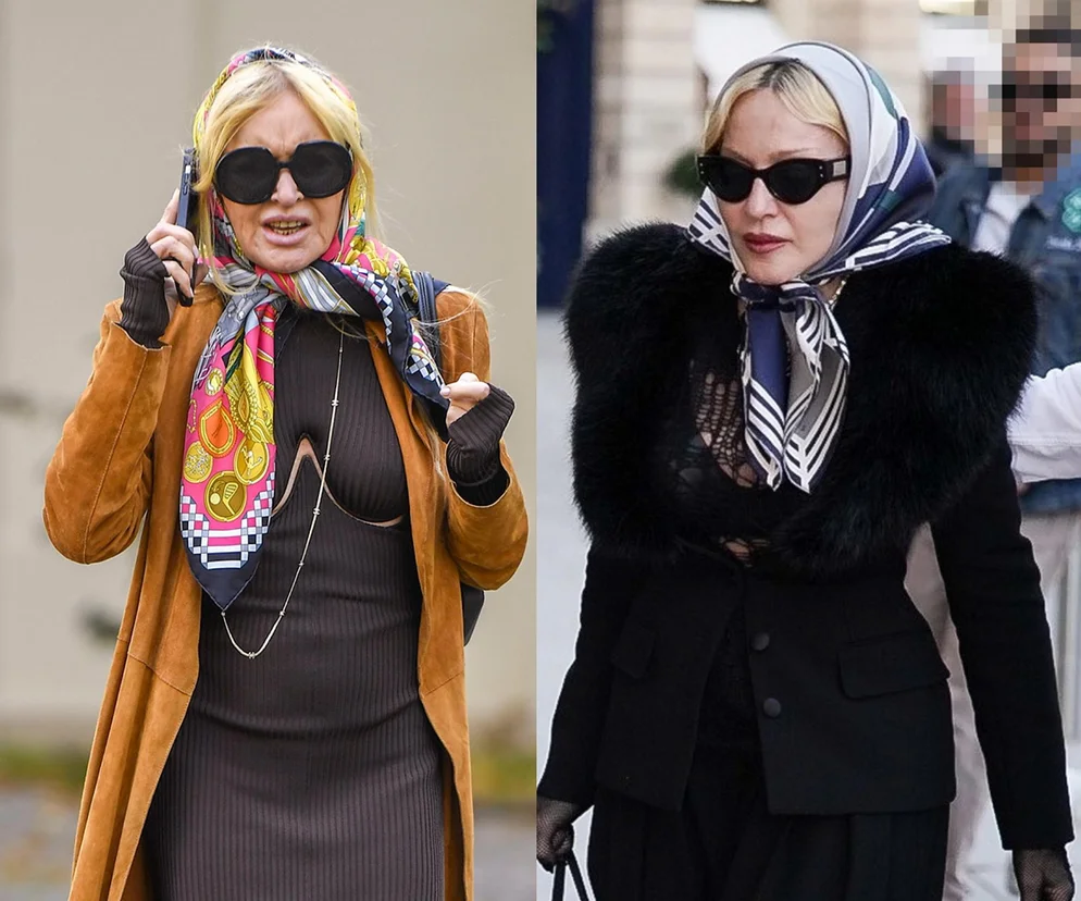 Olejnik zadziałała jak prawdziwa błyskawica! Madonna zaprezentowała się w długiej sukience, płaszczu, chustce na głowie i ciemnych okularach w niedzielę, a już w poniedziałek polska ikona mody pojawiła się w podobnym zestawie - długiej, dzianinowej sukience, długim płaszczu, apaszce na głowie i okularach przeciwsłonecznych. Widać podobieństwo?
