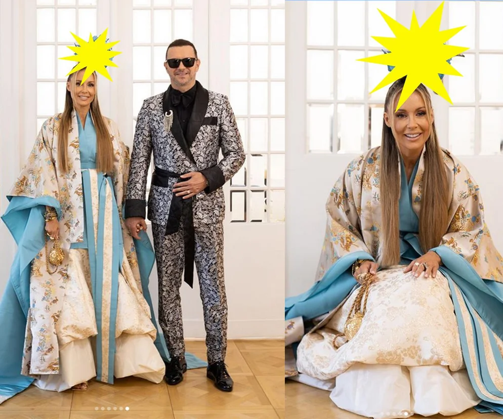 Małgorzacie Rozenek-Majdan na balu u Omeny Mesah i Rafała Brzoski jak zwykle towarzyszył mąż, Radosław Majdan. Oboje zaszaleli z kreacjami. Celebrytka chętnie pozowała do zdjęć w stylizowanym na orient stroju, a na głowie miała niebieski statek. W dłoni trzymała złote serce na łańcuszku. Radosław Majdan nie pozostawał w tyle i można śmiało stwierdził, że dorównał ukochanej artyzmem stroju. Były bramkarz reprezentacji Polski zdecydował się na garnitur w roślinny i jednocześnie pstrokaty wzór, który niewątpliwie przyciągał wzrok.