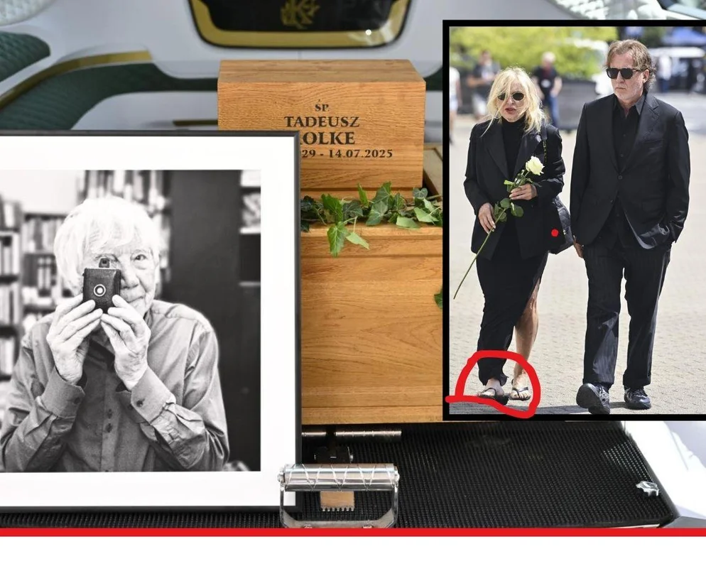 Gwiazda TVN24 w ręku trzymała białą różę, a jej kreacja - jak to zwykle bywa przy okazji pogrzebów - była ciemna. Najpewniej ze względu na warunki pogodowe Monika Olejnik zrezygnowała z zakrytych butów i założyła idealne na wysokie temperatury japonki. Dziennikarce towarzyszył jej wieloletni partner - Tomasz Ziółkowski. Tadeusz Rolke znał ich osobiście. Monika Olejnik po śmierci fotografa zamieściła nawet przejmujący wpis na Instagramie.