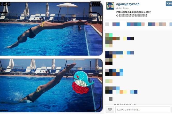 Takie ciało to marzenie każdej kobiety! Ani grama tłuszczu, obfity i całkiem apetyczny (chociaż sztuczny!) biust, płaski brzuch i długie nogi! Takim ciałem może się pochwalić Agnieszka Szulim. Choć na co dzień Szulim stroni od odkrywających ciało ubrań, Agnieszka wie, że basen rządzi się swoimi prawami, dlatego bikini to obowiązek!