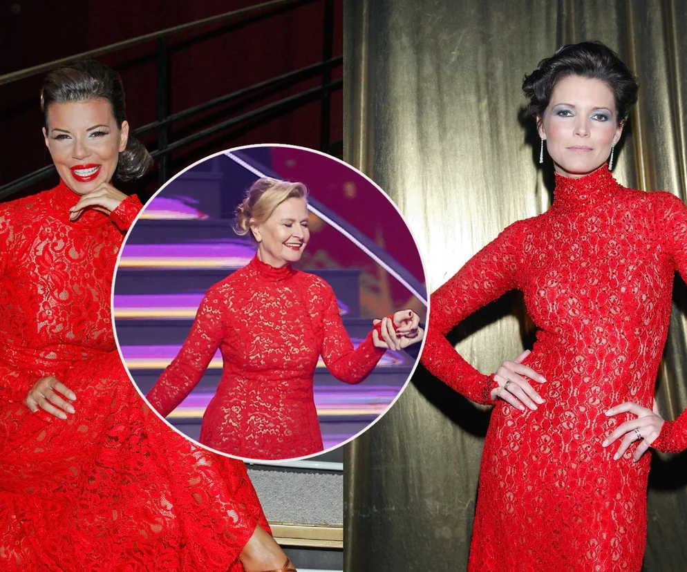 71-letnia Bursztynowicz przepięknie prezentowała się w ognistej kreacji uszytej z koronkowej tkaniny. Sukienka wspaniale poruszała się przy każdym jej ruchu. Podobnie jak inne stroje, które tego wieczora miała na sobie gwiazdorska obsada show, tak i czerwona sukienka była już noszona. I to kilka razy.
