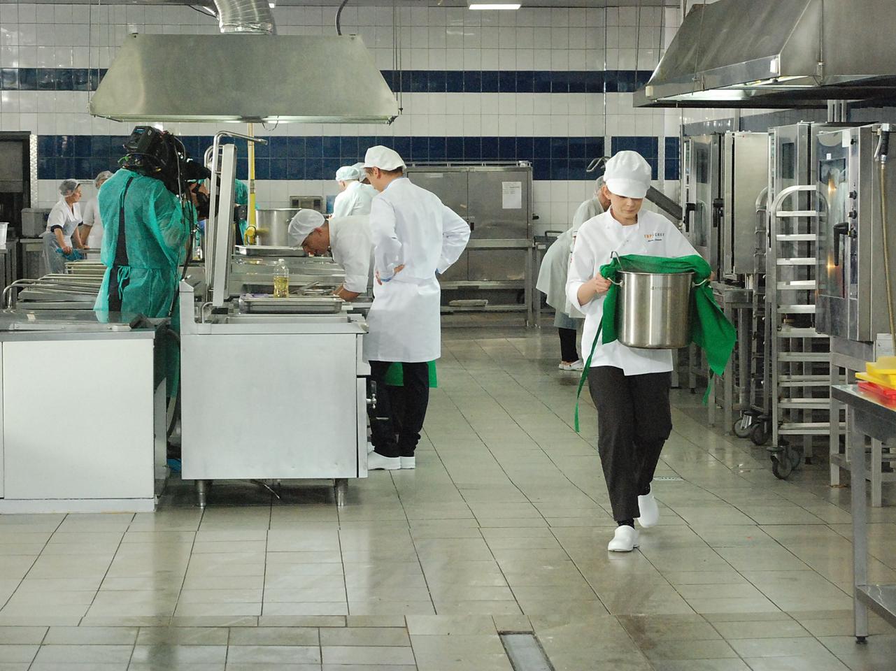 20:50 W ogromnej kuchni najlepiej czuje się Bartek z grupy zielonej. Dodatkowo doskonale dogaduje się z kucharkami nadzorującymi pracę uczestników.