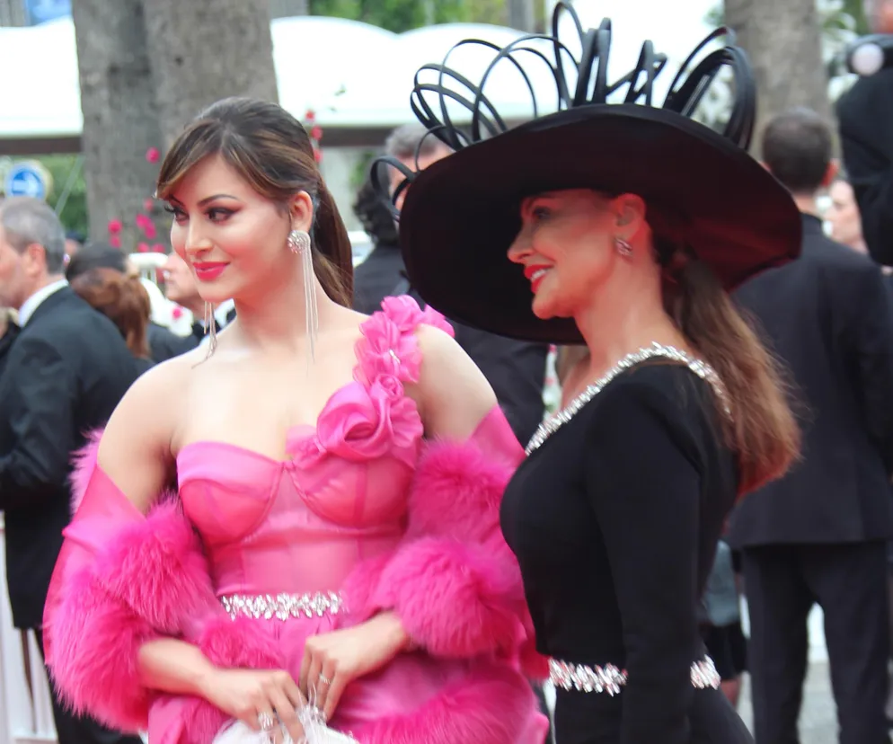 Urvashi Rautela wybrała amarantową sukienkę Doroty Goldpoint uszytą z jedwabnej organzy. Na kreację zużyto 36 metrów materiału - każda jej warstwa powstawała z koła. Ręcznie uszyto też kwiaty ozdabiające ramiączko sukienki.