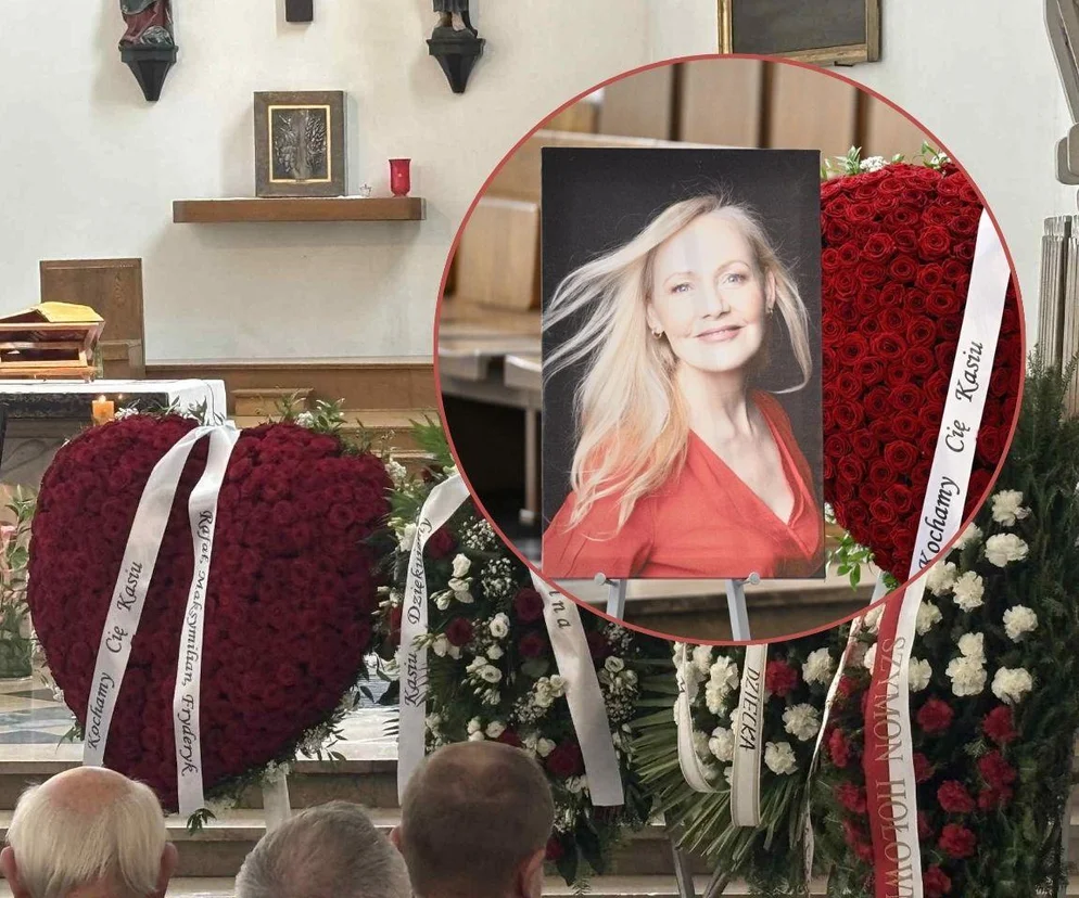 Zaraz obok zdjęć ustawiono wyjątkowe wieńce - wielkie serca z czerwonych róż. To symboliczne ostatnie podarunki dla Katarzyny od jej najbliższych - rodziców oraz męża z dziećmi. Do wieńców przyczepiono białe szarfy z napisami: "Kochamy Cię Kasiu. Rafał, Maksymilian, Fryderyk" oraz "Dziękujemy, że byłaś - żegnaj Kasiu. Do zobaczenia, rodzice". Te kilka słów wystarczyło, by w oczach żałobników pojawiły się łzy.