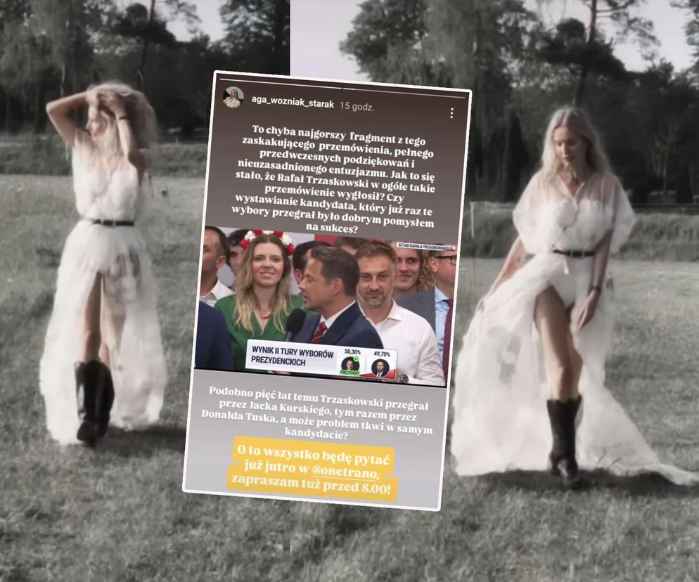 Agnieszka Woźniak-Starak dołączyła do szerokiego grona gwiazd, które niedługo po wyborach postanowiły skomentować ich wynik. Gwiazda telewizji najpierw pokazała idylliczne nagranie, do którego pozowała na łące ubrana jedynie w białe body i lekką, prześwitującą narzutkę. Chwilę później na jej profilu na Instagramie fani zobaczyli tekst, w którym nie owijała w bawełnę.