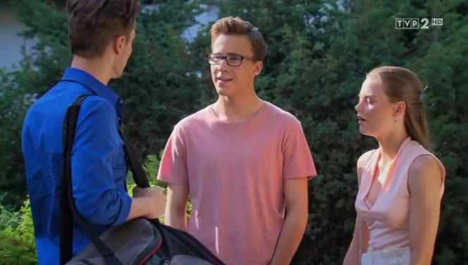 Barwy szczęścia odc. 1927. Julita (Katarzyna Sawczuk), Kajtek (Jakub Dmochowski), Józek (Patryk Pniewski)