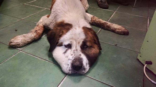 "Opiekun" zostawił przywiązanego do snopka psa Bunię. Umierającą sukę uratowali przechodzący tamtędy ludzie i fundacja "Bernardyn".