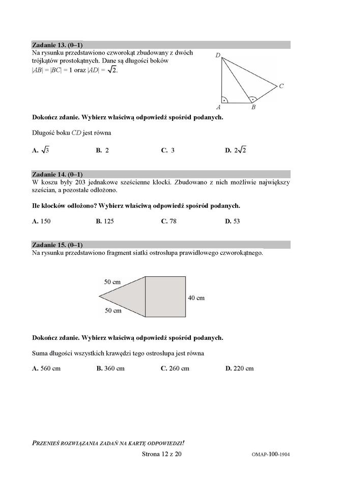 Egzamin ósmoklasisty 2019 - matematyka
