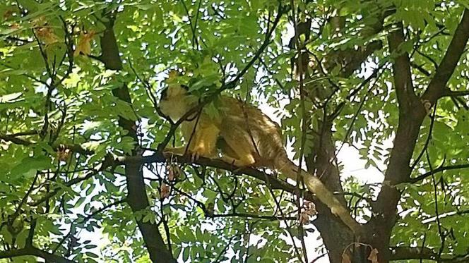 Małpka uciekła przez otwarte okno na warszawskich Bielanach i schroniła sie na drzewie, skąd - przy pomocy przechodnia - odłowił ją Ekopatrol Straży Miejskiej