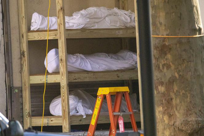 ciała zmarłych na koronawirusa w tymczasowych chłodniach w Nowym Jorku