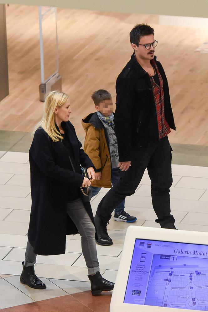 Mikołaj Krawczyk i Sylwia Juszczak oraz dzieci aktora - wszyscy wybrali sie na zakupy w jednej z warszawskich galerii handlowych