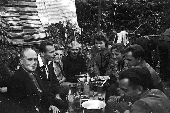 Wrzesień 1943 roku. Członkowie Brygady Świętokrzyskiej (od prawej): „Ewa” Janina Głowicka, „Marta” Maria Starosz, por. „Ponury” Jan Piwnik, ppor. Grot” Euzebiusz Domoradzk