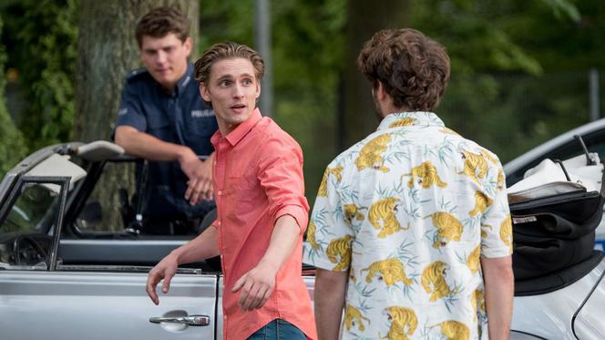 M jak miłość odc. 1393. Robert Wroński (Filip Gurłacz), mąż Weroniki (Przemysław Furdak), Sonia (Barbara Wypych), Janek (Tomas Kollarik)
