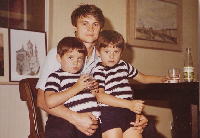 Stanisław Terlecki z synami Maćkiem (L) i Tomkiem(P). (Brugia 1981 rok)