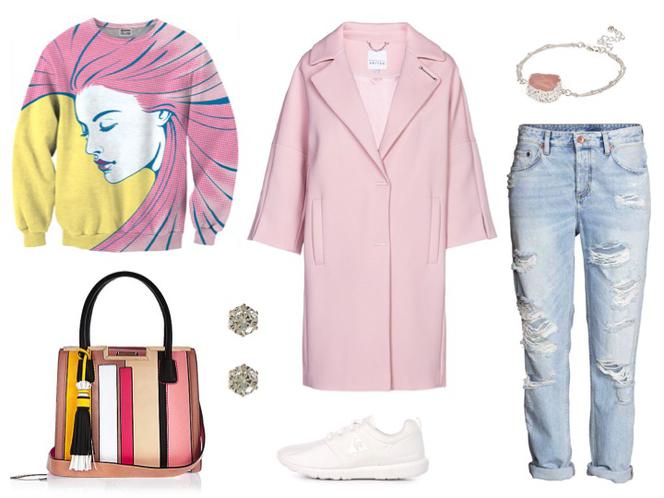 Płaszcz: Aryton/Showroom, bluza: Mr Gugu & Miss Go, spodnie: H&M;, torebka: River Island, buty: Le Coq Sportif/City Sport, naszyjnik: River Island, kolczyki: River Island