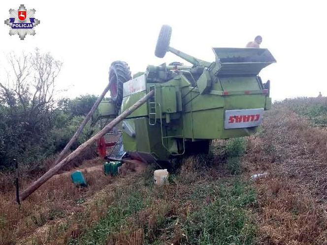 Dachował kombajnem na polu