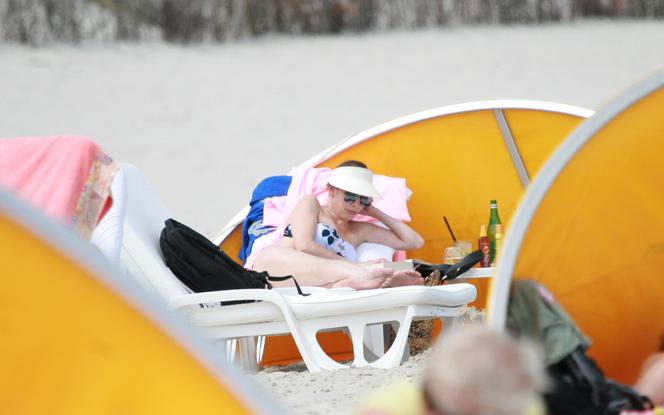 Agnieszka Dygant. Przykryła piersi chusteczką