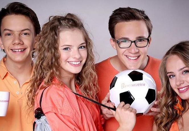 Barwy szczęścia. Zuzia (Anna Adamus), Filip Lisicki (Kuba Dyniewicz), Kajtek (Jakub Dmochowski), Oliwka (Wiktoria Gąsiewska)