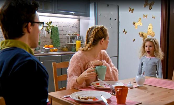 Barwy szczęścia, odc. 2239. Sabina (Barbara Kurzaj), Kajtek (Jakub Dmochowski), Maja (Lena Parol), Oliwka (Wiktoria Gąsiewska)
