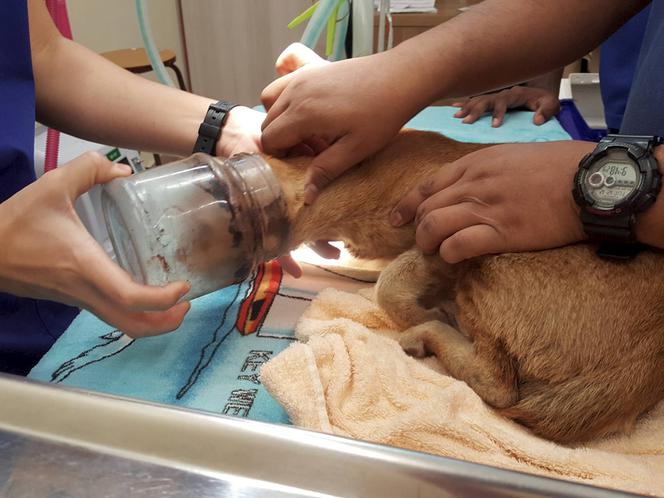 kot łasuch z głową w słoiku