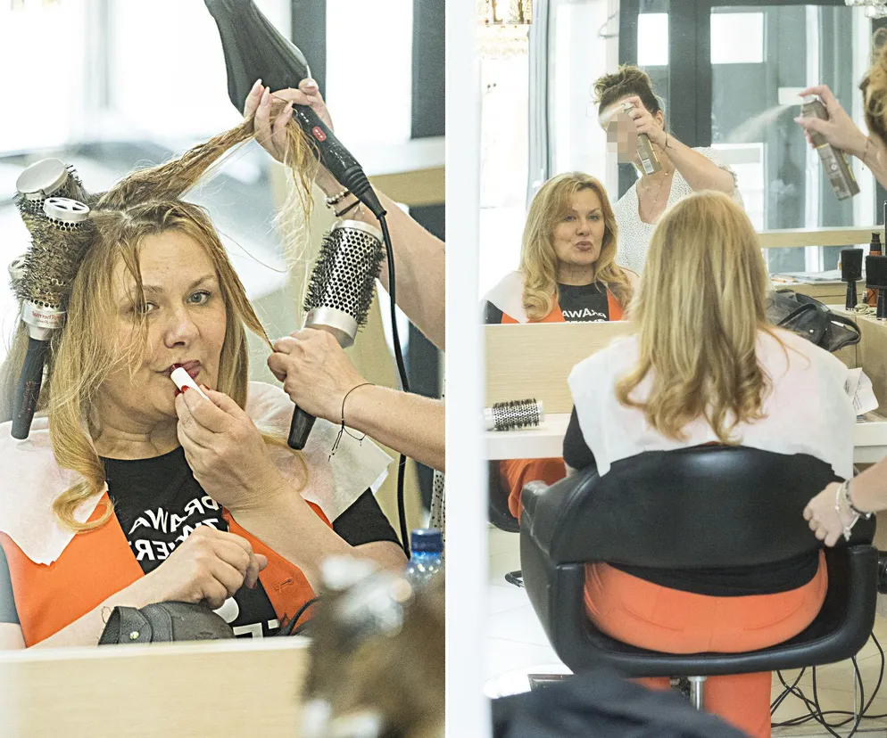 Zabieg trwał dość, a w tym czasie Katarzyna Piekarska asystowała stylistce, przeglądała telefon i popijała wodę.