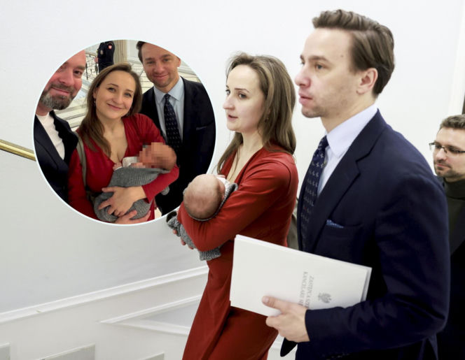 Krzysztof Bosak z żona Kariną i synkiem Stefanem