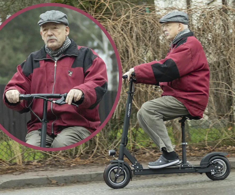 Przypomnijmy, że polityk Konfederacji w sierpniu zeszłego roku spadł z drabiny. Złamał lewą nogę, zwichnął staw skokowy i przeszedł dwie skomplikowane operacje. Przez długi czas poruszał się na wózku inwalidzkim, uczęszczał też na wyczerpującą rehabilitację. Mimo to skutki upadku odczuwa do dziś. Ale Janusz Korwin-Mikke jest jednak dobrej myśli. – Dziękuję, noga się goi – zaznaczył w rozmowie z nami Janusz Korwin – Mikke. I na dowód wyjął z piwnicy swoją hulajnogę i wybrał się na bazar w Otwocku. Polityk śmigał na hulajnodze i dobrze się bawił! Jak iwdać, samodzielne poruszenie się idzie mu coraz lepiej i sprawniej. - Jechałem hulajnogą lekko ponad 20 km/h. Nie szalałem. Z nogą już jest lepiej, ale na szczęście do hulajnogi potrzebna jest jedna noga – opowiada nam Korwin – Mikke. - Pojechałem na zakupy na bazarek, a hulajnogę dostałem w prezencie na 80-e urodziny – kwituje Janusz Korwin – Mikke. Podarunek z pewnością sprawił politykowi wiele radości. Jak widać, od razu zaczął go używać. Wystrojony w czerwoną kurtkę i kaszkiet mknął spokojną ulicą mimo ponurej aury. To nie tylko ekologiczny, ale też bardzo wygodny środek lokomocji, zwłaszcza dla kogoś z urazem nogi. Wiosną wycieczki na takiej hulajnodze na pewno będą o wiele przyjemniejsze.