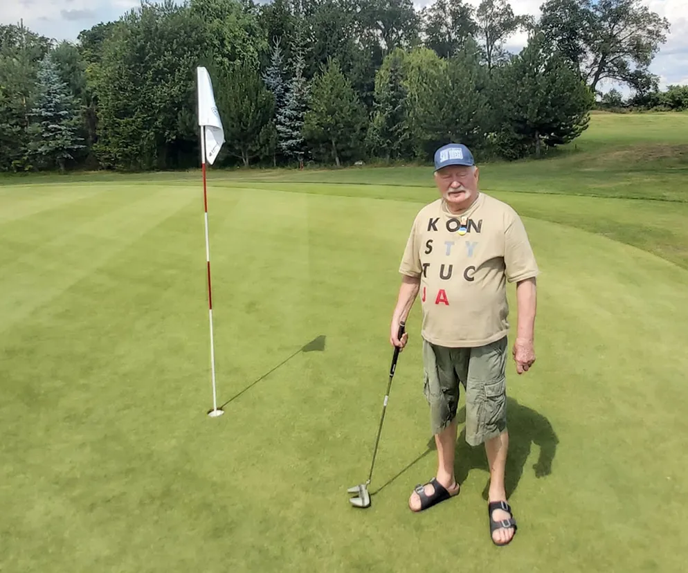 Na swoim profilu na Facebooku Lech Wałęsa pochwalił się zdjęciami, na których z widocznym zapałem próbuje wbić piłeczkę do dołka. W końcu mu się udało, a legenda Solidarności radośnie zatriumfował! W oczy rzuca się piękna, zielona okolica, a także strój polskiego noblisty.
