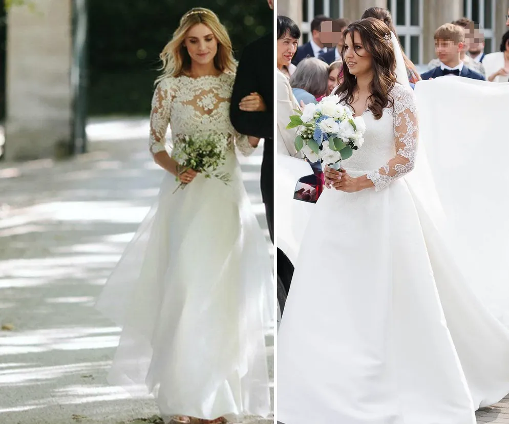 Okazuje się, że obie panny młode miały bardzo podobne suknie ślubne! Obie postawiły na klasyczny typ księżniczki. Wybrały klasyczną biel i elegancję, suknia Kasi miała koronkową górę i długie rękawy z koronki, tak samo było w przypadku sukni Oli: koronkowa góra i długie rękawy z koronki. Jedyna różnica była taka, że suknia córki Tuska była zabudowana i nie odsłaniała dekoltu, a w przypadku córki Morawieckiego suknia miała dekolt. Obie panny młode miały też bardzo podobne fryzury, zrezygnowały z koków czy upięć, a postawiły na prostotę, czyli rozpuszczone włosy. Zobaczcie zdjęcia z obu ślubów w galerii niżej: