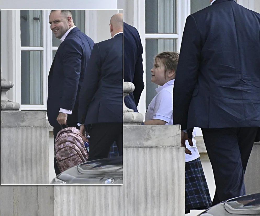Na zdjęciach, które publikujemy jako pierwsi, widać, jak prezydent Nawrocki z szerokim uśmiechem prowadzi 7-letnią Kasię w stronę Belwederu. Córka trzymała w rękach szkolne rzeczy, a na ramionach miała dziecięcy plecak. Ubrana w szkolny mundurek, wyglądała na szczęśliwą i podekscytowaną, że dzień zakończyła wspólnie z tatą.