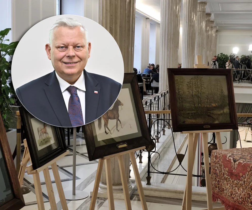 Poseł PiS pokazuje wystawę w Sejmie, od dziś do piątku. Na ścianach korytarza wiszą prace, których nie widać w telewizji, konie, akwarele z rodziną, metalowe konstrukcje, portrety znajomych, a także karykatury polityków.
