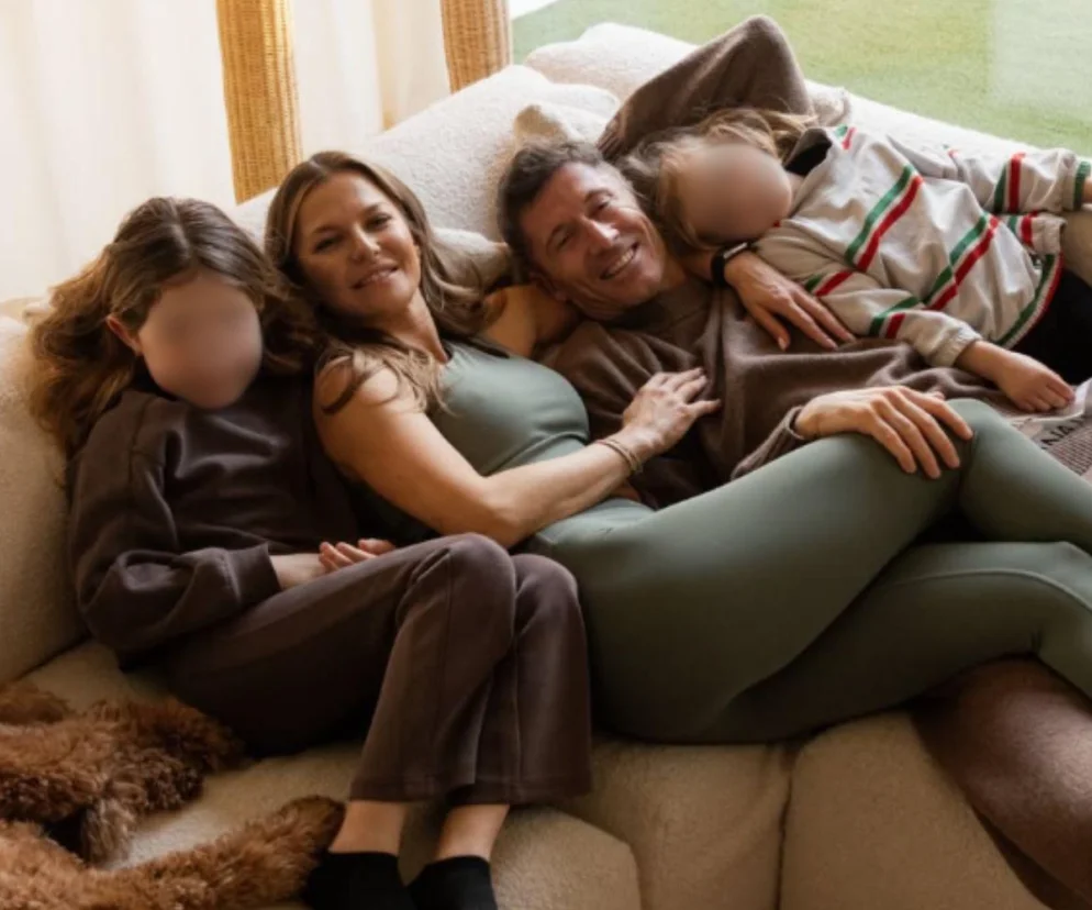 Na fotografii widzimy całą rodzinę w niezwykle domowym, przytulnym wydaniu. Robert Lewandowski wyciągnięty wygodnie na beżowej kanapie, wtulona w niego Anna oraz ich dwie córki – Klara i Laura – tworzą idealny obrazek rodzinnego szczęścia. Uwagę zwraca również kudłaty członek rodziny, Bella, która spokojnie drzemie w nogach swoich właścicieli.