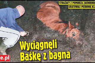 Im bardziej klacz próbowała się z pułapki wydostać, tym głębiej się zanurzała. - Gdy znalazłem moją Baśkę, byłem przerażony. Tylko łeb jej wystawał z bagna. Była wyczerpana. Nie było na co czekać, potrzebna była pomoc. Sam bym w życiu Baśki nie wyciągnął - wspomina pan Edward.Na ratunek przyjechali strażacy z OSP Bobolice. - Męczyliśmy się z tą klaczą kilka godzin. Do jej podniesienia musieliśmy użyć pasów. W końcu Baśka waży 700 kilogramów. Przeciągnęliśmy pasy pod jej brzuchem i podpięliśmy je do wyciągarki naszego wozu. Później ostrożnie i powoli wyciągnęliśmy klacz z bagna - tłumaczy Maciej Strzeszewski (24 l.), dowódca strażaków.