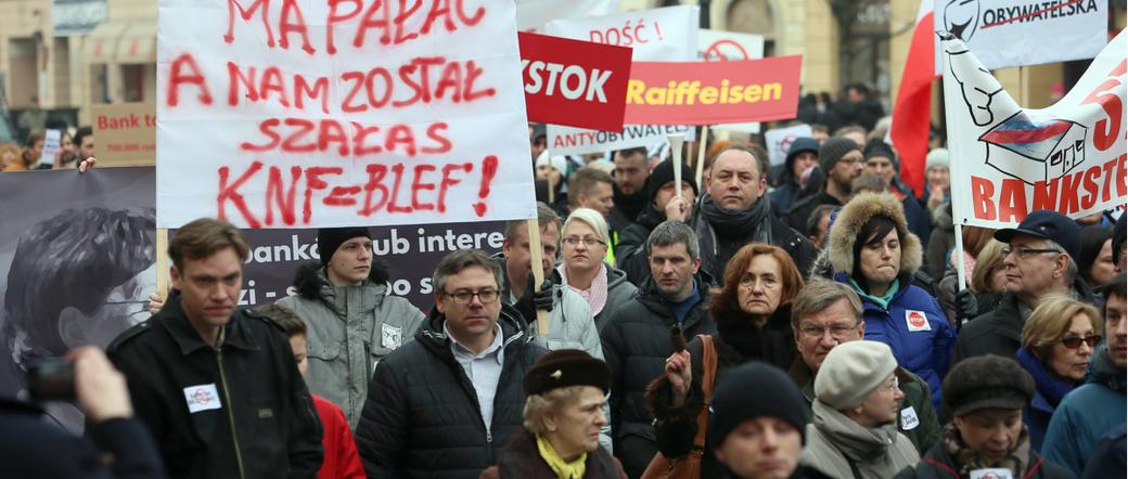 Przedstawiciele protestujących w Pałacu Prezydenckim spotkali się z ministrem Janem Lityńskim. Zapewnił on, że prezydent zamierza utworzyć komisję, dzięki której protestujący spotkają się z bankami. Na trasie przemarszu znalazło się właśnie 10 banków. - Który kradnie, ten upadnie! - krzyczeli przed nimi, przyklejając petycje w ich sprawie. Głośno było także przed Ministerstwem Finansów, Komisją Nadzoru Finansowego i Urzędem Ochrony Konkurencji i Konsumentów. Tam także dzwoniły budziki, grały trąby, biły bębny. - Obudzimy śpiące państwo - wołali protestujący. Z kolei przedstawiciele KNF oświadczyli, że jeśli otrzymają 10 tys. petycji, to zajmą się sprawą frankowiczów.