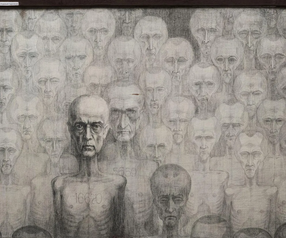 Przez długi czas, bo ponad 50 lat, nie chciał wracać do swoich obozowych przeżyć, nie chciał dzielić się nimi z innymi. Sytuacja się zmieniła dopiero w 1992 r., kiedy doznał udaru mózgu, który doprowadził do częściowego paraliżu prawej strony ciała. Lekarz, w ramach rehabilitacji, zalecił mu wówczas ćwiczenia, m. in. prawej ręki. Artysta, ołówkami przyczepionymi do palców prawej ręki, zaczął szkicować przenosząc na papier swoje wspomnienia obozowe. Tak, jakby nagle odblokował w sobie tę część, którą na wcześniejsze długie lata świadomie zablokował. Po latach przyznał, że nie sposób dłużej milczeć, bo „każdy, kto był w Auschwitz i przeżył Auschwitz, pozostał na całe życie z niezbywalnym piętnem rozgrywającego się tam ludzkiego tragizmu. Chciałbym podpowiedzieć widzowi: bądź cierpliwy, cierpliwie przeczytaj wszystko, co jest w tych rysunkach napisane. To są moje do Ciebie „narysowane słowa”. Trzeba je czytać”. I tak, w ciągu szesnastu kolejnych lat, powstawał cykl „Klisze pamięci” – jak sam potem zaznaczył w motto – „To nie obrazy, a słowa zamknięte w rysunku”. Oglądając prace zamieszczone na wystawie nie sposób się z tym nie zgodzić. Te prace mówią, krzyczą, jest w nich niesamowita siła – w tych twarzach udręczonych, upokarzanych więźniów, to opowieść jak z Apokalipsy, ukazana w sposób symboliczny, nawiązujący do mrocznych prac średniowiecznych twórców.