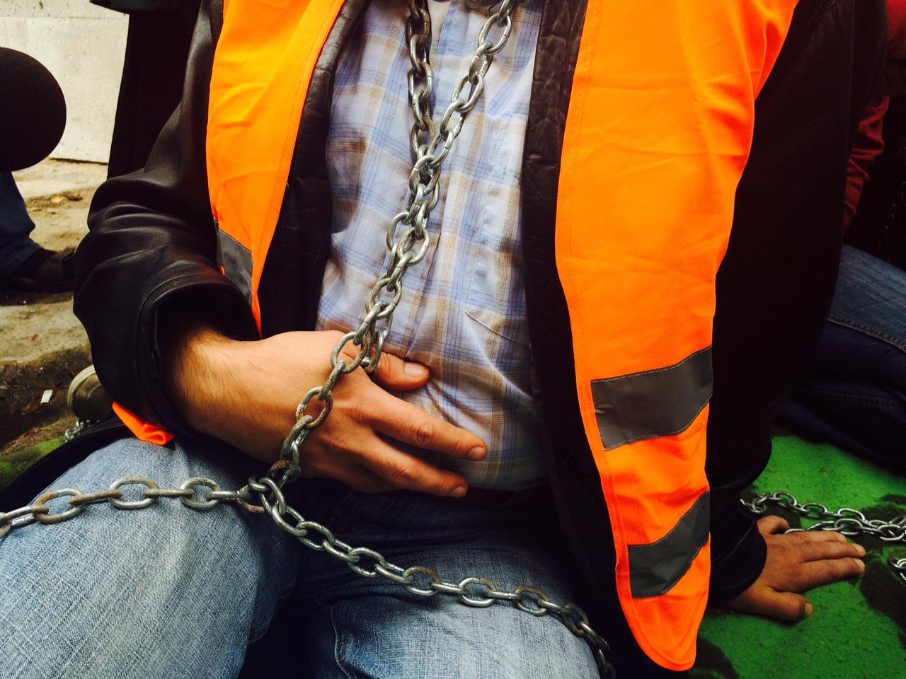 On i jego ludzie usiedli na ziemi przed wejściem do mieszkania pani Wioletty. Część z nich była obwiązana łańcuchami.
