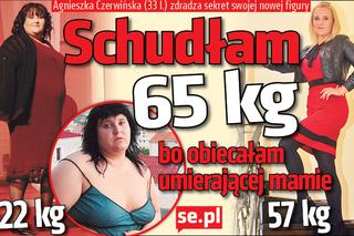 Młodą kobietą wstrząsnęła dopiero śmierć mamy, która zmarła z powodu powikłań związanych z otyłością. - Gdy mama umierała, obiecałam jej i sobie, że zrobię wszystko, aby schudnąć - mówi pani Agnieszka. I nareszcie się udało! Zmieniła całkowicie sposób odżywiania. Teraz je obowiązkowo 5 małych posiłków dziennie, ostatni 1,5 godziny przed snem. Zrezygnowała z białego pieczywa i smażenia potraw.