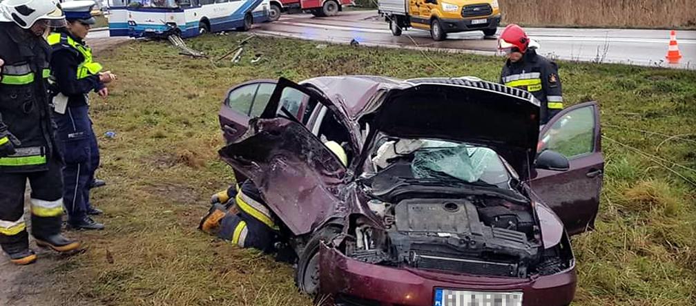 Do groźnego wypadku doszło we wczorajsze (12 grudnia) popołudnie w miejscowości Tołcze niedaleko Białegostoku (woj. podlaskie), na skrzyżowaniu drogi lokalnej z drogą wojewódzką numer 678. Siedzący za kierownicą osobowej skody 19-latek, włączając się do ruchu z szosy podporządkowanej, wymusił pierwszeństwo na jadącym prawidłowo rejsowym autobusie. 54-letni kierowca „pekaesu” nie zdążył w porę zahamować i z wielką siłą uderzył w osobówkę. Obaj kierowcy, a także podróżująca z 19-latkiem o dwa lata młodsza dziewczyna zostali przewiezieni na szpitalny oddział ratunkowy. Sześciu osobom podróżującym autobusem na szczęście nic się nie stało. Przyczyny i szczegółowe okoliczności wypadku ustalą policjanci.