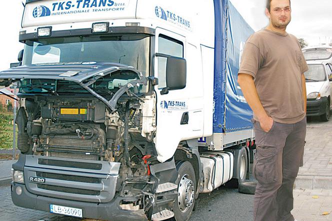 Ale kraksa wyglądała masakrycznie. Świadkowie byli pewni, że pan Rafał zginął. Sprawca wypadku, 40-letni kierowca z Białej Podlaskiej, był przerażony. Moja wina, moja wina - powtarzał tylko. - Nie martw się kolego, nic mi nie jest. Zgapiłeś się, trudno. Każdemu się może zdarzyć - mówi Rafał Mazur, również zawodowy kierowca.