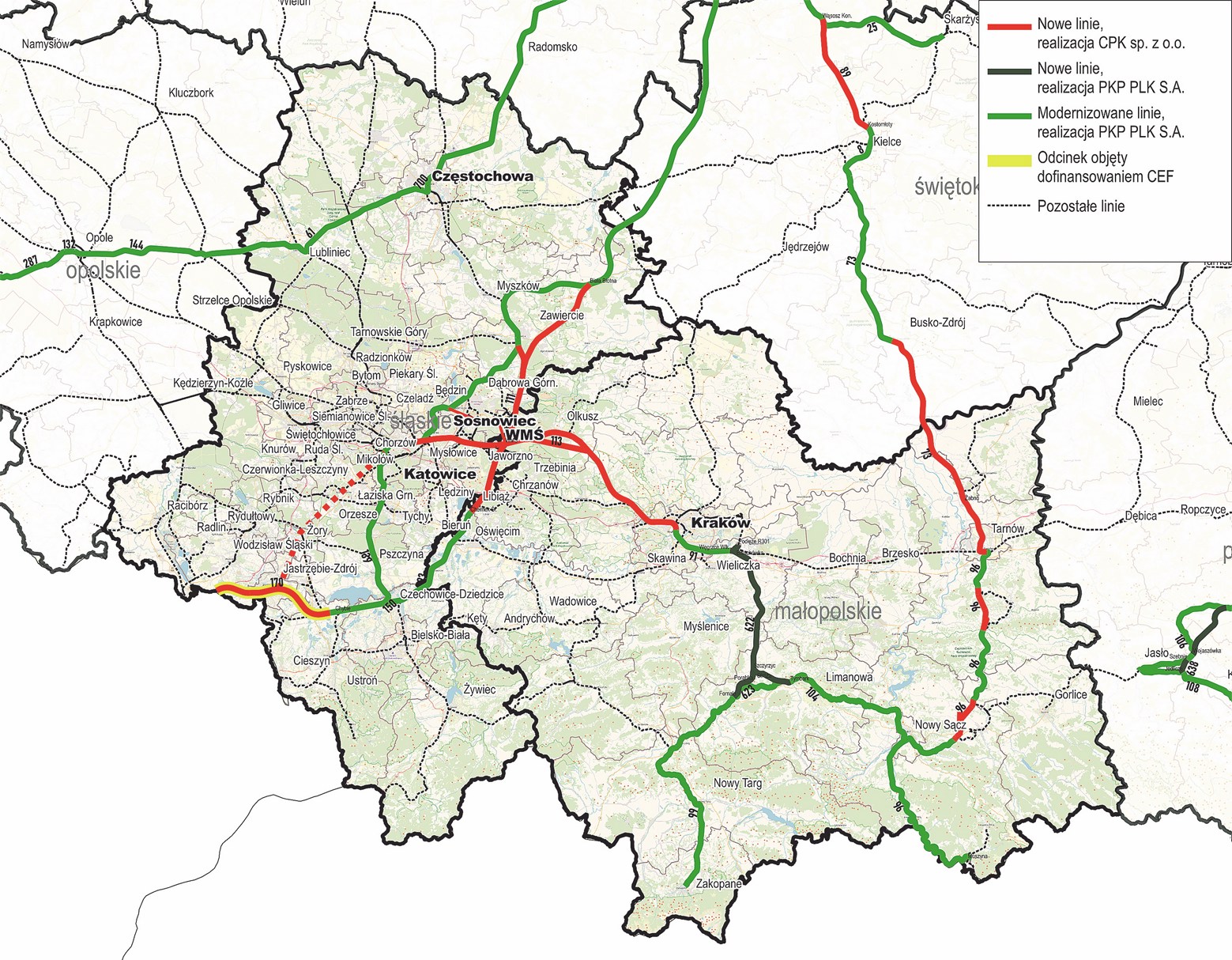 Nowe linie kolejowe to także wielki zysk dla Bielska Białej, Jastrząbia-Zdroju, Częstochowy, a także Sosnowca i Dąbrowy Górniczej. Zostaną uruchomione bezpośrednie połączenia kolejowe tych miast z Krakowem i Katowicami. Dziś z 200-tysięcznego Sosnowca czy 120- tysięcznej Dąbrowy Górniczej do odległego o60- 65km Krakowa nie ma ani jednego bezpośredniego połączenia kolejowego, a czas przejazdu z przesiadkami to 3 godz.! Po wybudowaniu nowych linii kolejowych pojedziemy bez przesiadek trasą Katowice-Sosnowiec-Dąbrowa Górnicza-Kraków, a podróż potrwa poniż ej 50 minut.