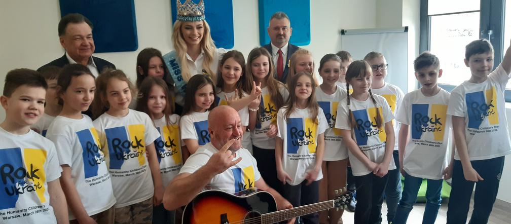 Gdy za wschodnią granicą Polski słychać wybuchy rakiet i strzały, krzyki i płacz niewinnych ludzi – w Mazowieckim Centrum Neuropsychiatrii, w niewielkim pomieszczeniu przy dźwiękach gitary Brian Allan prowadzi muzyczny warsztat „Rock for Ukraine”. Gdy zaczyna śpiewać, wtórują mu urocze głosiki - Chór ukraińskich dzieci. Wreszcie się uśmiechają, tym mocniej, gdy do sali wchodzi najpiękniejsza na świecie kobieta w koronie. Razem z marszałkiem województwa i prezesem Mazowieckiego Centrum Neurochirurgii rozdają dzieciom upominki, w tym pluszowe pandy.