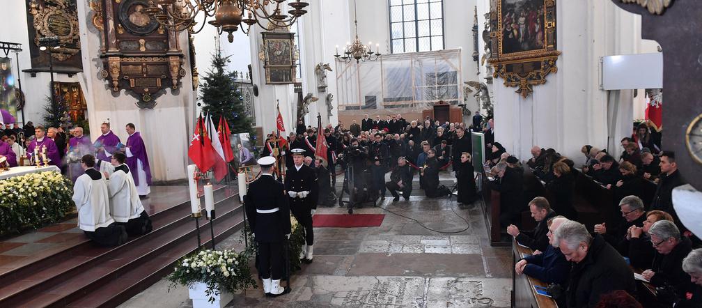 Pogrzeb zamordowanego prezydenta Gdańska Pawła Adamowicza odbył się w Bazylice Mariackiej. W świątyni złożona została urna z prochami zmarłego. Pieniądze, zebrane na tacę podczas mszy pogrzebowej zostaną przeznaczone na pomoc rodzinom w syryjskim Aleppo - taką informację przekazał proboszcz Bazyliki Mariackiej w Gdańsku ks. prałat Ireneusz Bradtke na antenie Polsat News.