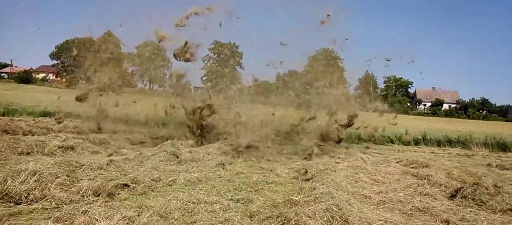 Do tego niecodziennego zdarzenia doszło w niedzielne popołudnie. W jednym z gospodarstw we wsi Aleksandrowo pojawiło się tornado i zaczęło szaleć po polu uprawnym. Silny wir spustoszył plony rolnika, przeszedł obok jego zabudowań i... rozpłyną się w powietrzu. Odważny gospodarz wyszedł z domu i zarejestrował tornado telefonem komórkowym. Jak twierdzą Łowcy Burz ten rodzaj zjawiska w tym okresie występuje bardzo często.