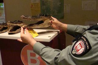 Podczas rutynowej kontroli bagażu obywatela Polski, który powracał z USA, celnicy warszawskiego lotniska wykryli 7 spreparowanych głów i 12 łap oraz 1 ząb aligatora, a także skorupę żółwia lądowego.