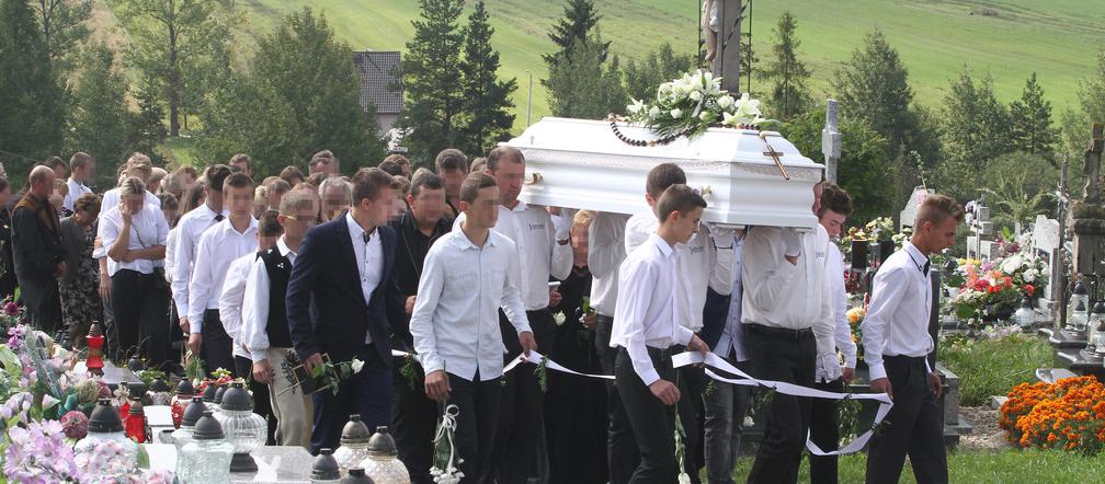 Pogrzeb 18-letniej Angeliki odbył się w kościele parafialnym w Chyżnem. Wyprowadzenie zmarłej z Domu Żałoby miało odbyć się o godzinie 9:30. Jednak doszło do drobnego opóźnienia. Pożegnanie nad trumną nieco się przeciągnęło. Angelikę żegnało starsze rodzeństwo - dwie siostry i brat - oraz pogrążeni w żałobie rodzice. Po ciężkim i długim pożegnaniem żałobnicy udali się za białą trumną do kościoła parafialnego w Chyżnem. Tam została odprawiona msza. 18-latkę żegnali również jej znajomi. Wiele osób miało ze sobą białe róże.