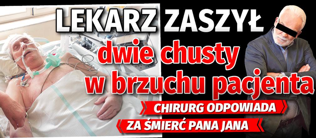Do tej strasznej pomyłki doszło w 2012 r. Dopiero po pewnym czasie zorientowano się, że w ciele mężczyzny są zaszyte ciała obce. Blisko rok po feralnym zabiegu Ireneusz N. znowu trafił na stół operacyjny, bo chusty trzeba było wyciągnąć. Kilka tygodni później mężczyzna zmarł.