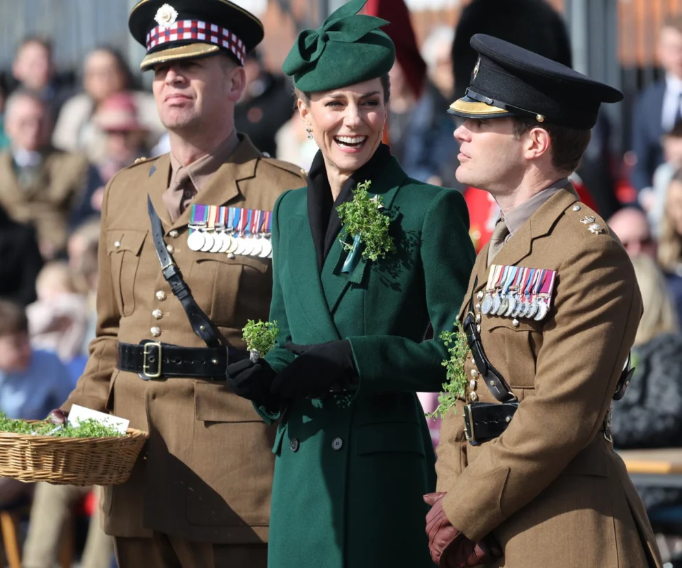 Księżna Kate ponownie wzięła udział w obchodach Dnia św. Patryka razem z Gwardią Irlandzką. Pełni ona podwójną rolę. Z jednej strony to jednostka bojowa, a z drugiej – reprezentacyjna ochrona monarchy. Żołnierzy tej formacji często można zobaczyć podczas służby przy Pałacu Buckingham czy zamku w Windsorze. Kate pojawiła się na paradzie w Mons Barracks jako honorowy pułkownik tej jednostki. Kate Middleton została pułkownikiem Gwardii Irlandzkiej w 2022 roku, po zmianach w rodzinie królewskiej, które nastąpiły po objęciu tronu przez króla Karola III. Podczas uroczystości księżna wręczyła żołnierzom koniczynę. To ważny symbol Dnia św. Patryka i element obchodów, który jest powtarzany co roku. Koniczynę otrzymała także maskotka pułku, czyli pies rasy wilczarz irlandzki.